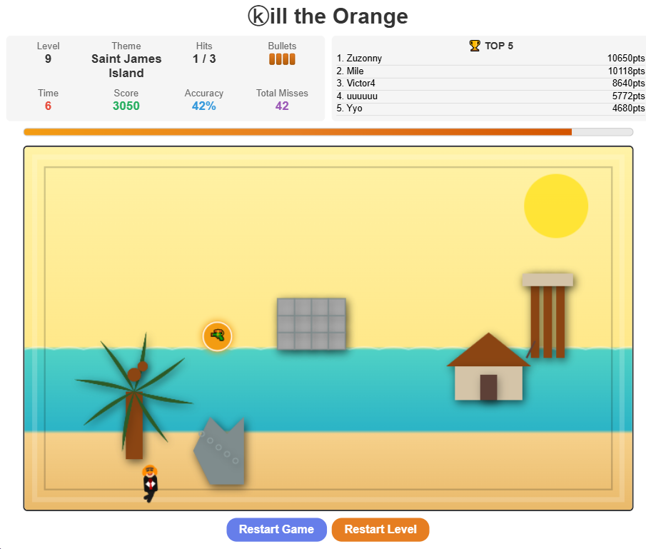 TargetPopper (ⓚill the Orange) is a fast-paced precision shooting game built for quick reflexes and clean aim.